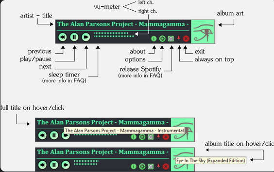 A small player for Spotify that you can place anywhere on the desktop so that you can check out what is currently playing without having to access anything else.