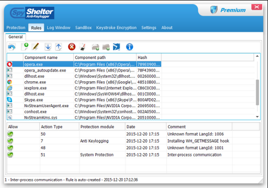 Real-time protection against keyloggers and other malware attacks, featuring customizable settings when it comes to rules, restricted apps, folders with write access, and more.