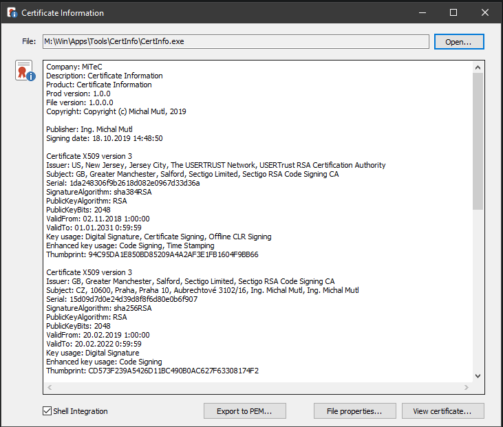 MiTeC Certificate Information 1.0.0
