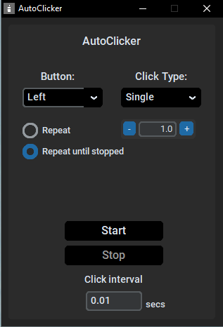 AutoClicker is designed to be a powerful, easy-to-use AutoClicker with many features and a modern GUI. AutoClicker automatically clicks the mouse so fast and holds the mouse button down.