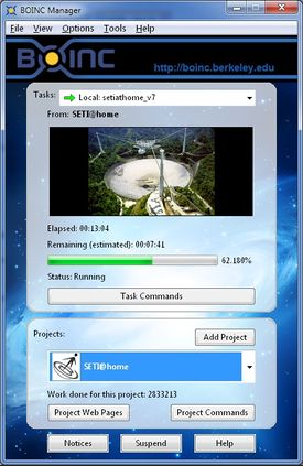 You can participate in several projects, ensuring that your computer will be kept busy even when one project has no work. You can control how your resources (such as computer time and disk space) are divided among these projects.