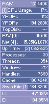 TinyResMeter is a small tool that you can configure to display real-time information of various system resources, including CPU, RAM, process etc. More details are available in a context menu that pops up when you right-click on each displayed field.