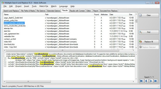 A useful program that will allow you to search your files for specific content and attributes, in order to perform quick modifications or replacements.