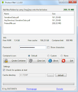 Die Software ist portable und kann nur von einem USB-Stick aus gestartet werden.Das hinzufügen von Daten geschieht durch einfaches Drag and Drop - es können nur Dateien hinzugefügt werden, die auf dem USB-Stick liegen. Diese Dateien werden nach dem einfügen in den Container sicher gelöscht.