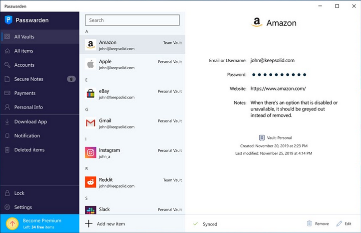 An easy and safe password manager and generator that helps you store your passwords and other important data in an encrypted vault.