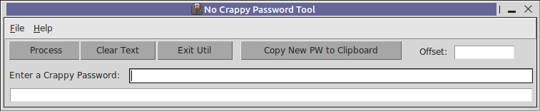 No Crappy Passwords works by hashing the crap out of your crappy password input producing an eighty-five-character password that can be easily copied to the clipboard.
