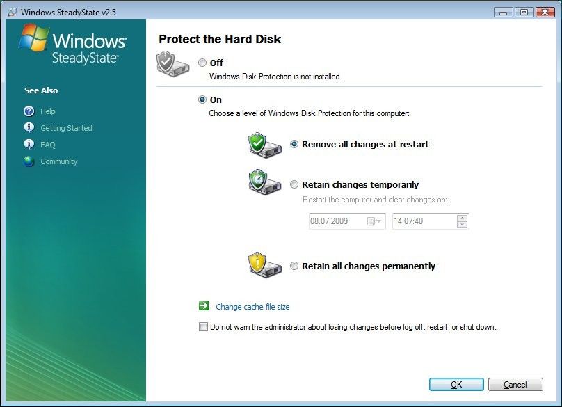 Fazit: Wer öffentlich zugängliche Systeme einrichten muss oder bei Schulungen oder für andere Gelegenheiten stets frische Systeme haben will, kommt mit Windows Steady State schnell zum Ziel.