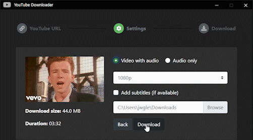 YoutubeDownloader is an application that lets you download videos from YouTube. You can just copy-paste URLs of any videos, playlists or channels and download them directly to a format of your choice. It also supports searching by keywords, which is helpful if you want to quickly look up and download videos.