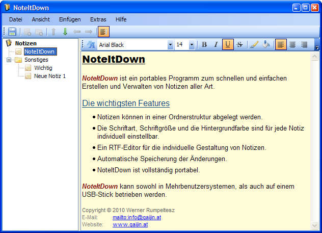 NoteItDown ist ein portables Programm zum schnellen und einfachen Erstellen und Verwalten von Notizen aller Art.