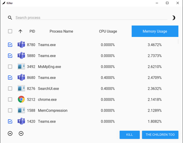 Manage running processes on your computer and terminate several tasks at once with the push of a button, without looking for child processes yourself.