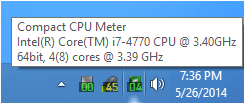 Compact Tray Meter is a systray app capable of displaying CPU, RAM, and disk drive usage. Compact Tray Meter is designed to have as small of an impact on the system resources as possible to improve the accuracy of its reporting. Besides retrieving the wealth of technical information about your system, for use in verifying the authenticity of your hardware, most users can run this utility to monitor the overall health of their machine. If your machine's usage spikes regularly at a high percentage it generally indicates there is some activity going on in your system, possibly indicating a malfunction, misconfiguration in settings, or even a potential malware infection. Knowing that there is a potential issue as it is occurring can prevent it from becoming worse and further compromising your machine's usability.