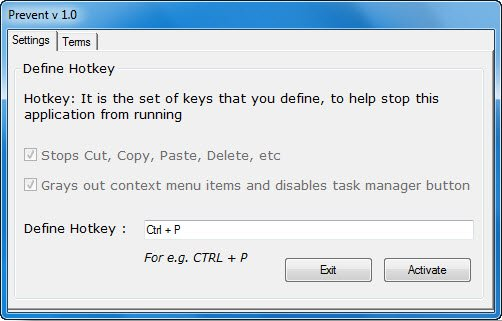 Additionally, Prevent will obstruct the ability to right-click on a process name and click on end process. It also grays out the context menu items, disables Ctrl+C, Ctrl+X, and Ctrl+V and/or stops the process.