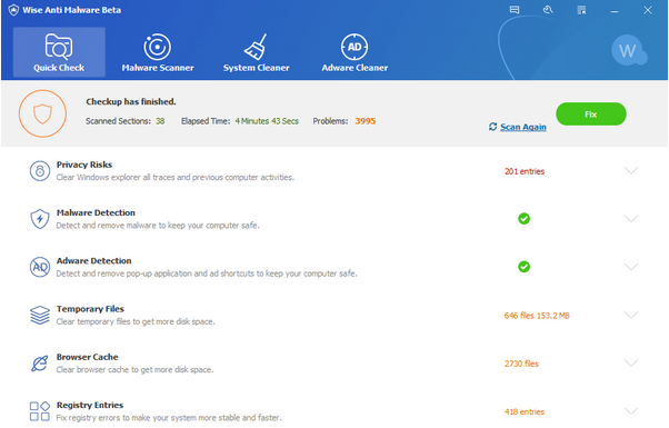 Wise Anti Malware promises to deliver a security solution that can help you scan your computer for malware, while also keep it running at top performance at all times. With real-time protection against malware, this application can run quick, full, and custom analysis of the host PC, aiming to detect potentially dangerous content.