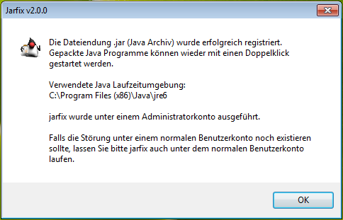 Ermittelt die installierte Java-Version unter Windows und stellt die richtige Verbindung zwischen dem Dateityp JAR (Java Archiv) und javaw.exe wieder her, damit Java-Programme mit einem Doppelklick gestartet werden können.