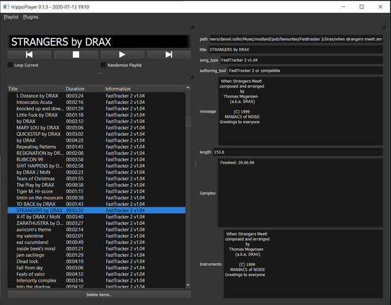 It plays *.MOD, *.XM, *.IT plus MP3s, OGG, APE, SIDS, WAV, MIDI, RMI, AU, AIFF for an easier way to listen to fiels you'd otherwise have to frustrate yourself over.