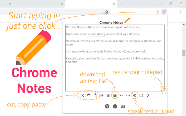Chrome Notes enables simple note-taking through a handy Chrome extension that includes some useful features.