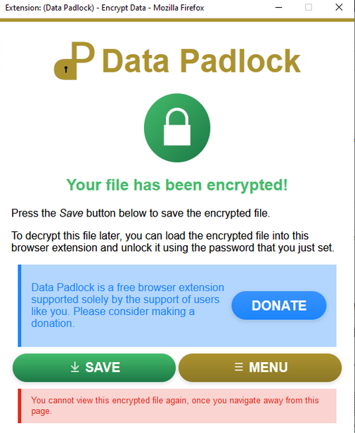 Data Padlock is a Firefox add-on designed to allow users to preserve their privacy and security by encrypting files and messages with a password. Data Padlock uses the Advanced Encryption Standard (the same standard used by the US government), which provides a high level of security. This robust add-on can be used for various purposes, like sharing messages or files over an unencrypted network or securing files you store in the cloud.