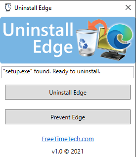 Uninstall Edge is a portable utility that allows you to uninstall Edge and prevent future instances from being installed.